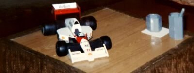 Na mesma época, eu já tinha visto para vender na tradicionalíssima Feira do Largo da Ordem, aqui de Curitiba, réplicas de alguns F1 de madeira que ficavam expostos perto da barraquinha da minha mãe. Sempre quando eu ia junto com meu pai buscar minha mãe na Feirinha, por volta das 13h00, eu ficava lá namorando as miniaturas…