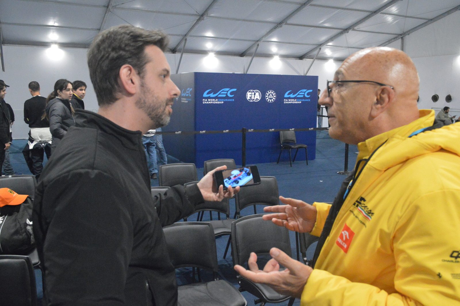 Lucas e Giuseppe Petrotta, diretor técnico da AF Corse. Ele foi engenheiro-chefe da equipe Osella de F1 entre 83 e 87 e trabalhou durante muitos anos da Ferrari, inclusive como engenheiro de Jean Alesi