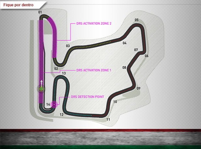 A pista tem alto grau de demanda dos pneus porque exige muita aderência mecânica e os carros vêm com seu downforce em nível máximo. Tração é a chave para o sucesso, já que 10 das suas 14 curvas serão feitas abaixo de 155 km/h na média da simulação das equipes. Além disso, temos essa nova fase de motores turbo que ainda vai exigir um pouco mais de controle dos pilotos no consumo da borracha.