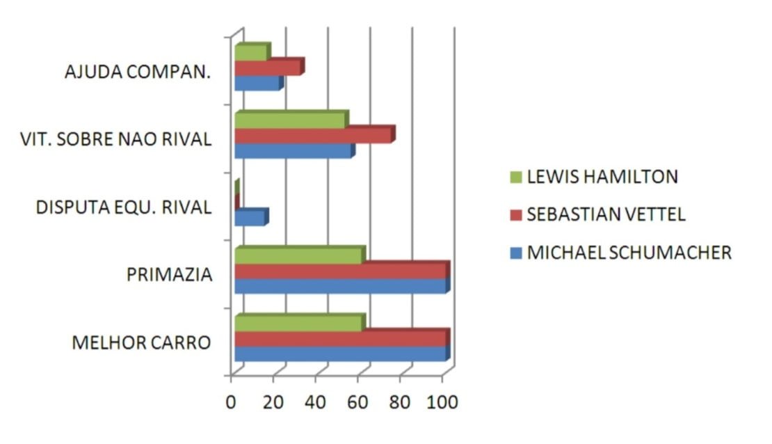 Por último, Michael Schumacher, Sebastian Vettel e Lewis Hamilton, são os multi campeões mais recentes e o gráfico com suas percentagens é o seguinte: