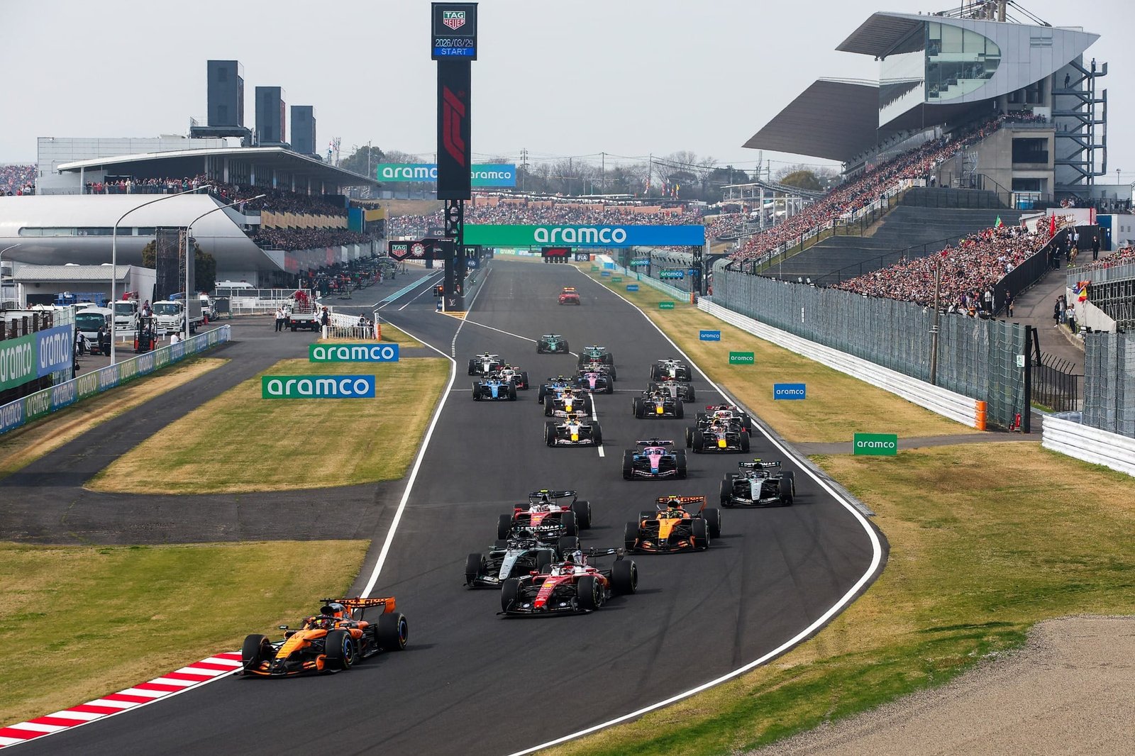 Suzuka é um dos palcos icônicos da F1, com suas curvas rápidas e fluídas, mas estava nítido que com o novo regulamento, o circuito japonês seria palco de mais um vexame para a F1 nesse 2026. A longa reta oposta, seguida pela curva 130R é um dos pontos de mais longa aceleração do calendário. Para completar o cenário negativo, a Spoon não é exatamente uma curva de baixa, fazendo com que os pilotos chegassem nessa parte da pista sem estar com a bateria totalmente cheia.