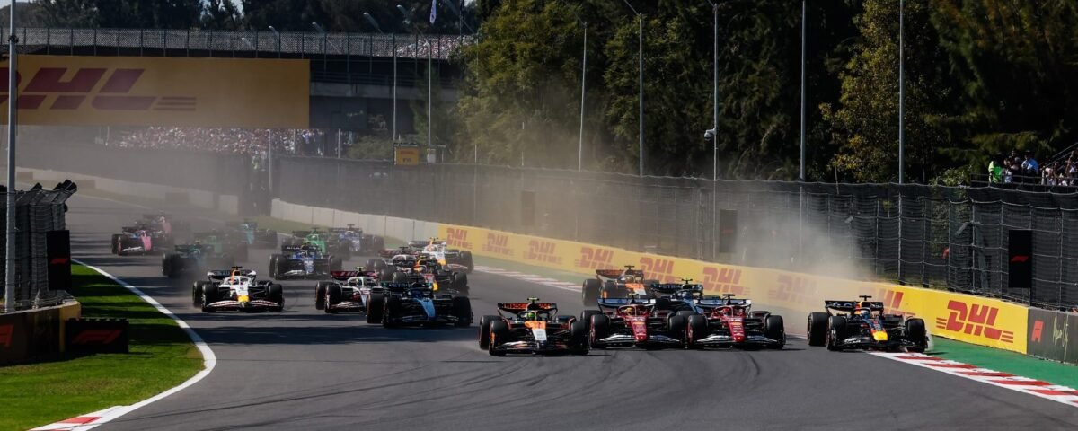 Debaixo do dia mais quente que compôs o final de semana do Grande Prêmio da Cidade do México, todos esperavam pela primeira curva da corrida. Com uma distância de quase um quilômetro entre a largada e a primeira curva, muita coisa poderia acontecer até a primeira freada. Todos sabiam disso e a maioria dos pilotos calçaram os pneus macios para ter o melhor arranque possível, enquanto que a Red Bull foi no sentido contrário e montou pneus médios nos carros de Verstappen e Tsunoda. Se tornou folclórico as largadas ruins de Lando Norris saindo da pole, dessa vez o inglês saiu muito bem e se colocou decididamente por dentro, enquanto a dupla da Ferrari procurou o vácuo da McLaren.