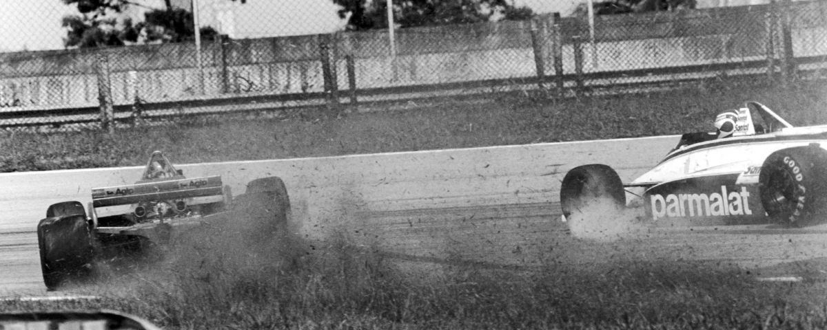 Gato e rato entre dois ossos duros, disputando a liderança do GP Brasil. Piquet põe pressão sobre Gilles que morde a isca, retardando a frenagem além do possível e caindo na armadilha do brasileiro, como pode ser visto na foto que abre esta coluna.