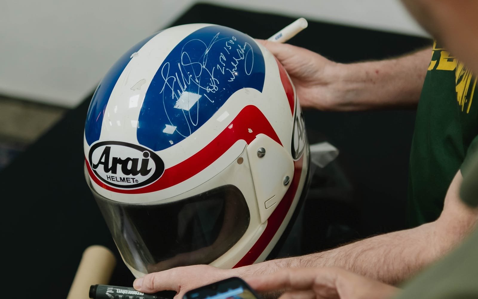 Por minha indicação, esse amigo colecionador acabou arrematando, em um leilão online, o capacete Bell de um piloto brasileiro de Indy. Um artigo lindo, raro, exclusivo e… autografado.