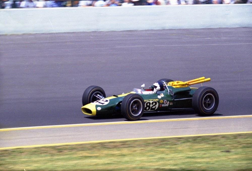 Não deu tempo pra ver Jim Clark correr. O que guardo dele são imagens. A mais memorável mostra o escocês rumo à vitória em Indy 500 65, pilotando o magnífico Lotus 38. (https://gptotal.com.br/memorias/).