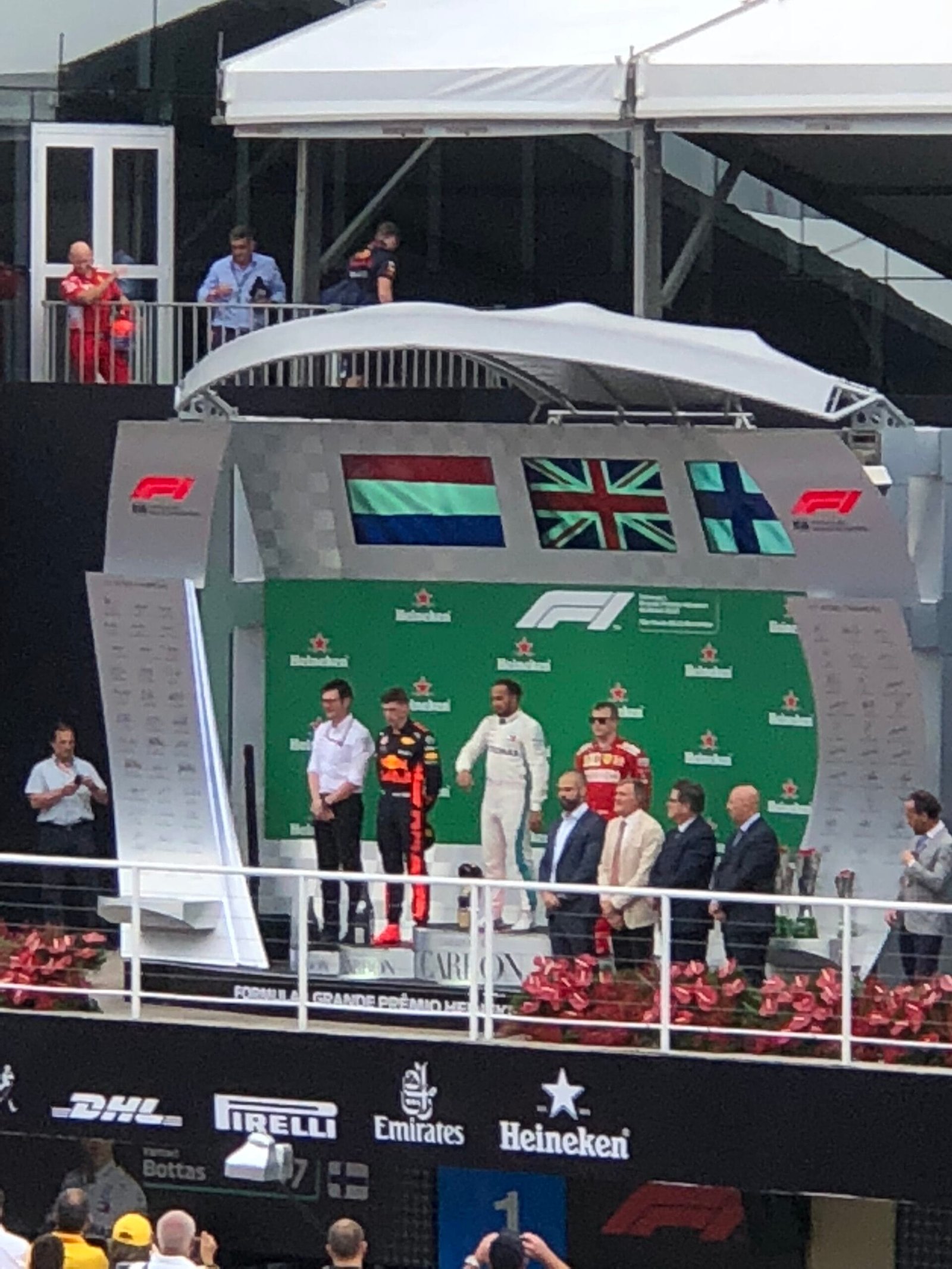 Só voltei a Interlagos em 90 (nunca fui a Jacarepaguá, que Deus me perdoe por isso) e vi todos os GPs até 2018, sempre nas arquibancadas e tribunas. Na foto abaixo, o pódio de 2018, foto do autor, o que explica sua baixa qualidade.