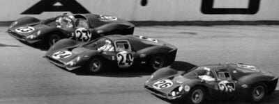 A mais linda chegada de todos os tempos, a mais doce vingança da história do automobilismo. Uma parada de Ferraris no quintal da Ford em plena guerra entre os fabricantes. Amon e Bandini em 1º, Parkes e Scarfiotti em 2º – as duas duplas com Ferrari 330P4, um dos mais belos carros de todos os tempos –, Rodrigues e Guichet em 3º, com Ferrari 412P.