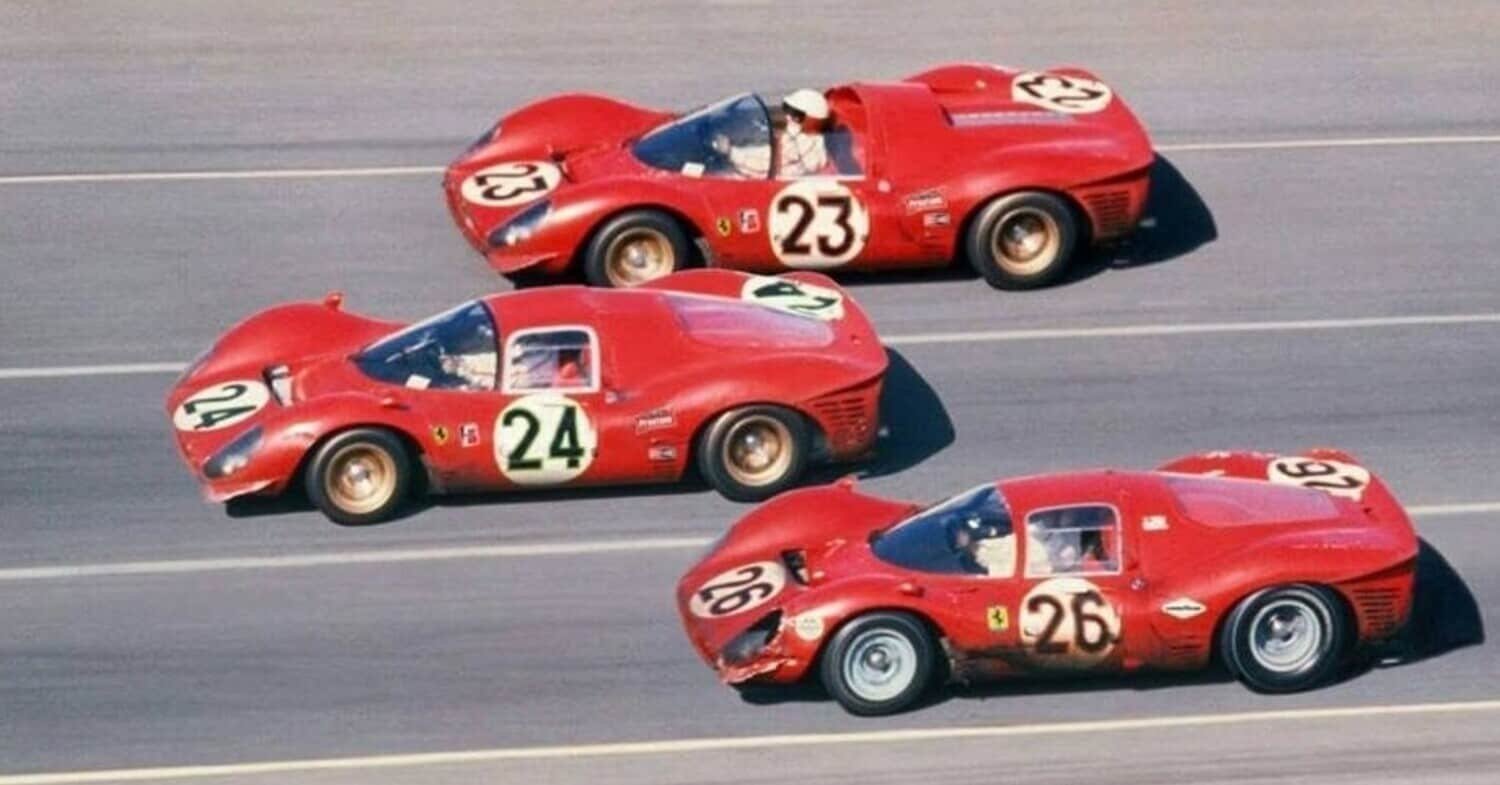 Nestes tristes tempos de lacração a qualquer custo, a Ferrari perdeu a oportunidade de reviver esta semana uma das fotos mais icônicas da história do automobilismo, tirada em 5 de fevereiro de 67, na chegada das 24 Horas de Daytona, etapa do Campeonato Mundial de Marcas, registrando três magníficos Ferrari da série P cruzando em parada a linha de chegada nos três primeiros lugares da prova (nas duas fotos abaixo).