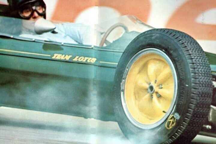 Clark pilotava o Lotus 33, síntese de beleza e velocidade como poucas vezes se viu nas pistas. Impressão minha ou o pneu dianteiro direito mal toca o asfalto?