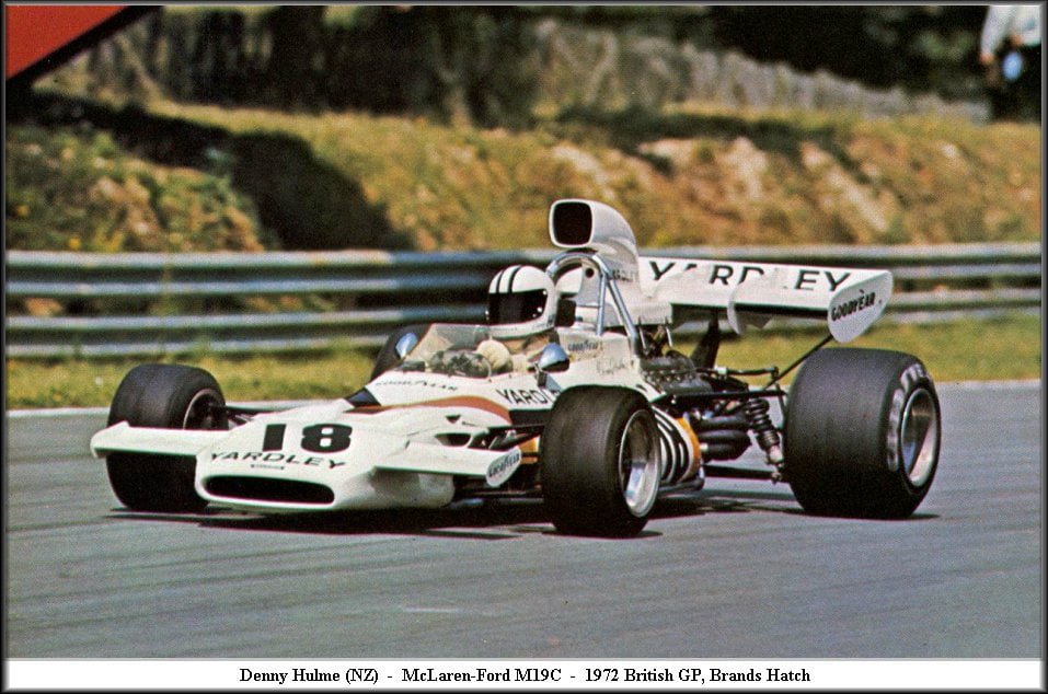 Hulme e a McLaren reagem. Com o patrocínio da Yardley, a equipe volta a ser protagonista. Hulme só fica atrás de Emerson Fittipaldi e Jackie Stewart no Mundial de Pilotos, tendo conseguido o 2º lugar na Argentina e a vitória na África do Sul, duas primeiras corridas do ano, além de mais cinco pódios. Graças a este desempenho, a equipe termina o ano em 3º no Mundial de Construtores. Na foto, Hulme em Brands Hatch, onde terminou em 5º.