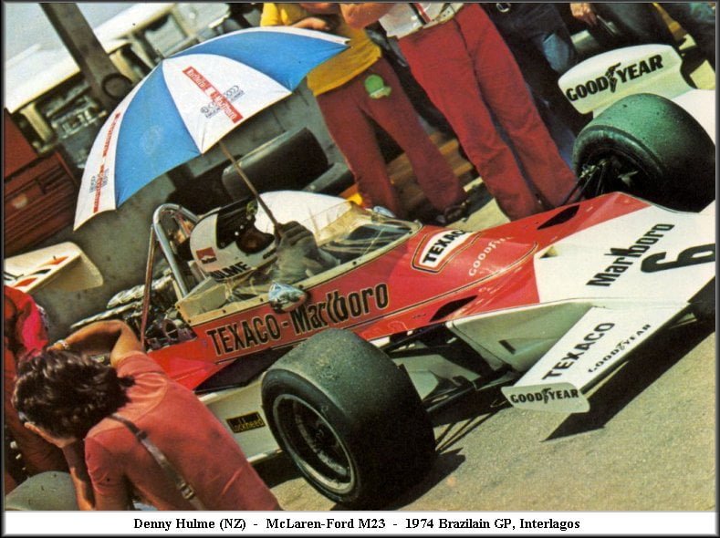 Se estava cansado, Hulme disfarçou ao que pode. Abriu a temporada 74 simplesmente vencendo na Argentina – ele atribuiu a vitória à sorte, tendo assumido a liderança da prova a duas voltas do final, depois de Carlos Reutemann ficar sem gasolina. Era a primeira vez que a equipe McLaren aparecia com as cores da Marlboro e tendo Emerson na equipe.
