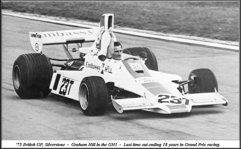 No GP seguinte, na Espanha, Hill aparece como chefe de equipe, inscrevendo o próprio chassi – um Lola T371 reciclado –, batizado GH1, e equipado com o motor Ford Cosworth (foto acima). Stommelen é um dos seus pilotos e naquele GP insano, disputado em Montjuïc, um circuito de rua totalmente despreparado para um GP, a ponto de ser boicotado por Emerson e outros pilotos com um mínimo de juízo, Stommelen chega à liderança, depois de largar em 9º. Mas o aerofólio traseiro do seu Hill se desprende e o carro voa sobre o público, matando cinco pessoas.