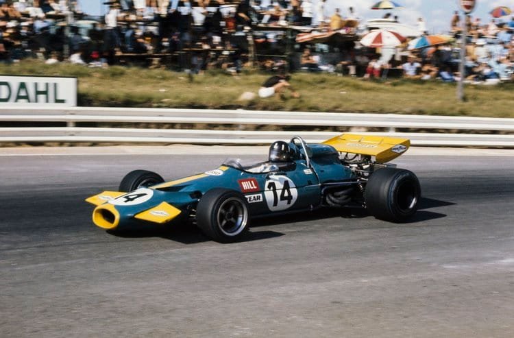 Graham Hill muda-se para Brabham, agora sem a presença de Jack, fundador da equipe, que a vendeu para o engenheiro Ron Tauranac. Ele cria o modelo BT34 (foto abaixo), equipado com motor Ford Cosworth e um estranho sistema de radiadores à frente das rodas dianteiras, o que rendeu ao carro o apelido de “Patas de Lagosta”.