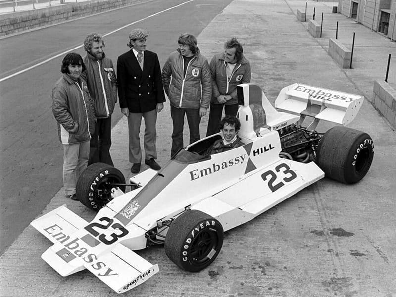 Hill tenta a cartada da equipe própria. Com patrocínio da Embassy, compra um chassi Shadow DN1 (foto abaixo), o equipa com motor Ford Cosworth, estreando na quarta prova do ano e… nada acontece. Hill não colhe um ponto sequer ao longo do ano, abandonando em metade dos doze GPs de que participa. Seu melhor resultado é um 9º lugar na Bélgica.
