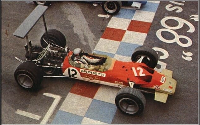 Em 68, Andretti se acertou com Chapman, ocupando o lugar que fora até o começo da temporada de Jim Clark. Chegou a disputar os treinos para o GP em Monza com um Lotus 49B (foto acima), equipado com o motor Ford Cosworth, marcando o 10º tempo nos treinos. Em seguida, voou aos Estados Unidos, para competir em outra corrida. Os organizadores italianos alegaram um veto regulamentar e não o deixaram largar.