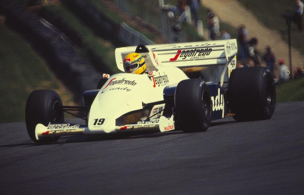Senna estreia em Jacarepaguá, em 25 de março, a bordo do Toleman TG183B (foto acima), o carro do ano anterior, projetado por Rory Birne e que rendera à equipe dez pontos no Mundial de Construtores, todos conquistados nos quatro últimos GPs do ano.