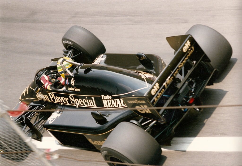 O Brasil se entusiasma por Senna, agora ao volante de um Lotus com o mesmo preto-e-dourado do carro de Emerson Fittipaldi, campeão em 72.