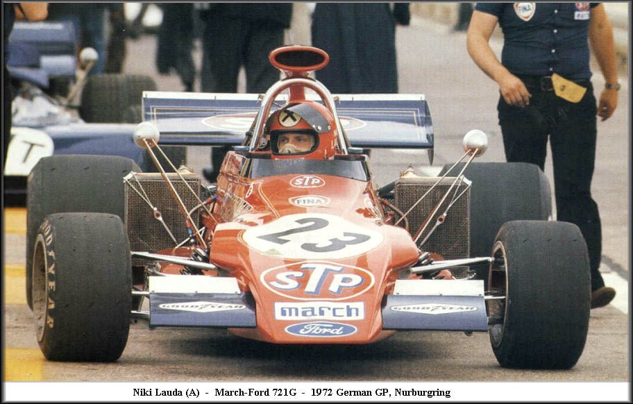 Niki Lauda sobre o câmbio Alfa Romeo que testou em seu March em 72 (foto acima). “Você engatava a 4ª ou a 5ª e entrava a 2ª ou a 3ª. Era uma questão de sorte acertar a marcha”.