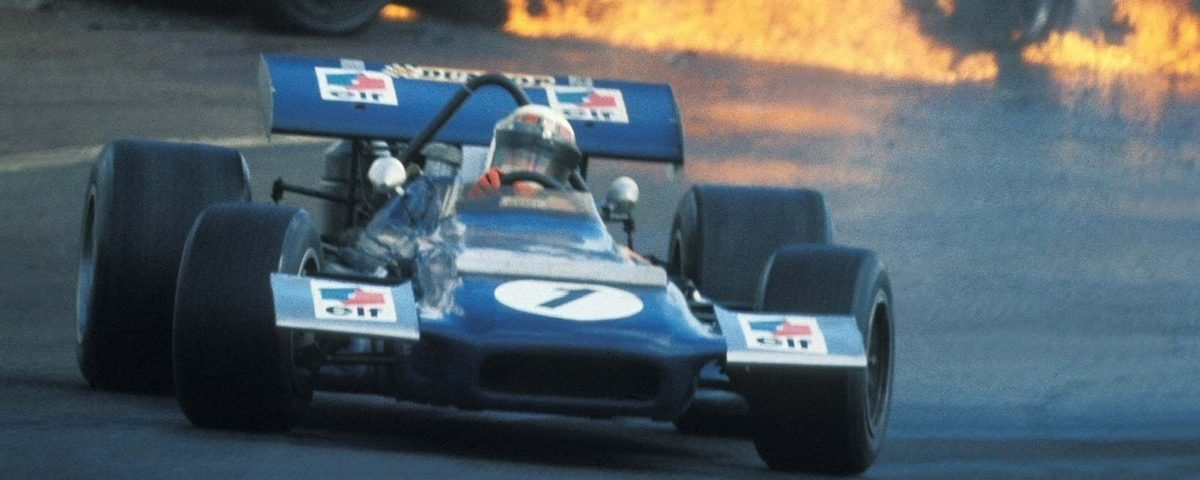 Quanto às outras fotos, na preto&branco vemos Stewart e seu Matra Ford em Silverstone 69, uma das grandes corridas do escocês, aquela em que duelou com Jochen Rindt. A foto do incêndio, mostra Stewart passando pelos carros de Ickx e Jackie Oliver. Os dois escaparam do acidente, que gerou um córrego de fogo atravessando a pista. Também neste GP a vitória foi de Stewart.