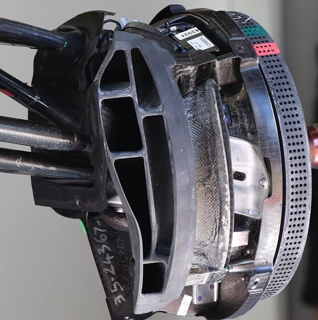 Finalmente, a refrigeração dos freios é de extrema importância. Além de manter o sistema na temperatura ideal, a utilização de dutos para direcionamento de ar auxilia na aerodinâmica do veículo como um todo, proporcionando ganhos de até 1,5%. Uma outra maneira de manter o sistema na temperatura ideal é a utilização de discos ventilados, chegando a apresentar até 1000 “furos” em alguns casos.