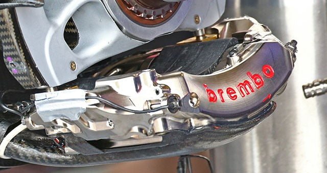 Um aspecto do sistema de freios da F1 no qual não existe um consenso é no posicionamento das pinças de freio. Enquanto algumas equipes optam por colocá-las o mais baixo possível para obter ganho em dinâmica veicular (abaixando o centro de gravidade), outras optam por localizá-la de maneira a facilitar a purga do sistema (um procedimento muito mais comum do que se pensa).