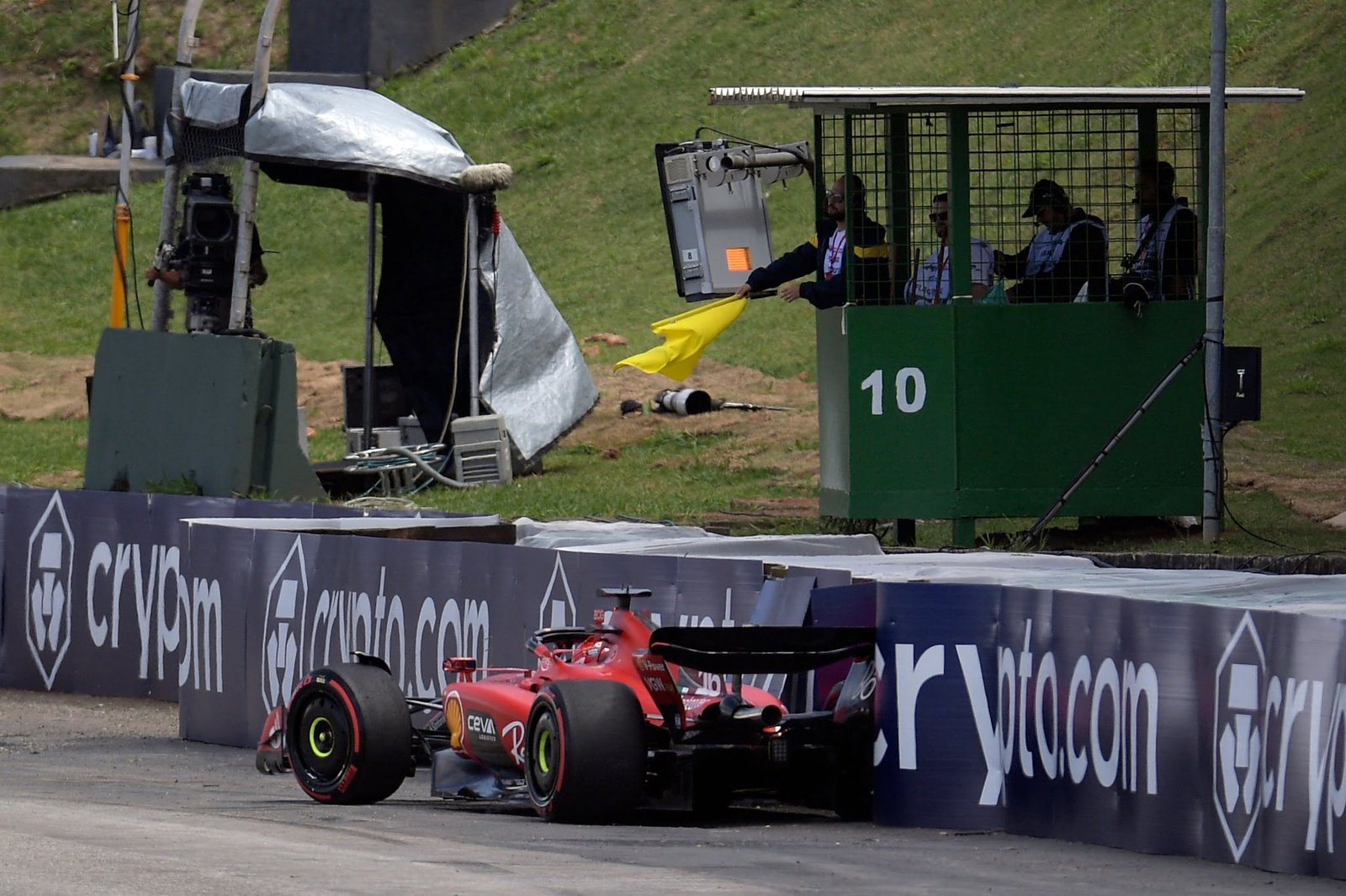 Quando Charles Leclerc marcou o segundo tempo na Classificação para a corrida na sexta-feira, o próprio monegasco não esperava lutar mais seriamente pela vitória com um Max Verstappen praticamente intocável, sem contar que o sol apareceu forte no domingo, maximizando o grande problema da Ferrari nessa nova geração de carros, que é o desgaste de pneus. No entanto, o monegasco não esperava imitar o vexame de Alain Prost em Ímola/1991 ao bater durante a volta de apresentação, por causa de um problema hidráulico na Ferrari, deixando Leclerc revoltado com a própria falta de sorte. Esse foi apenas o primeiro incidente do dia, mas haveria mais.