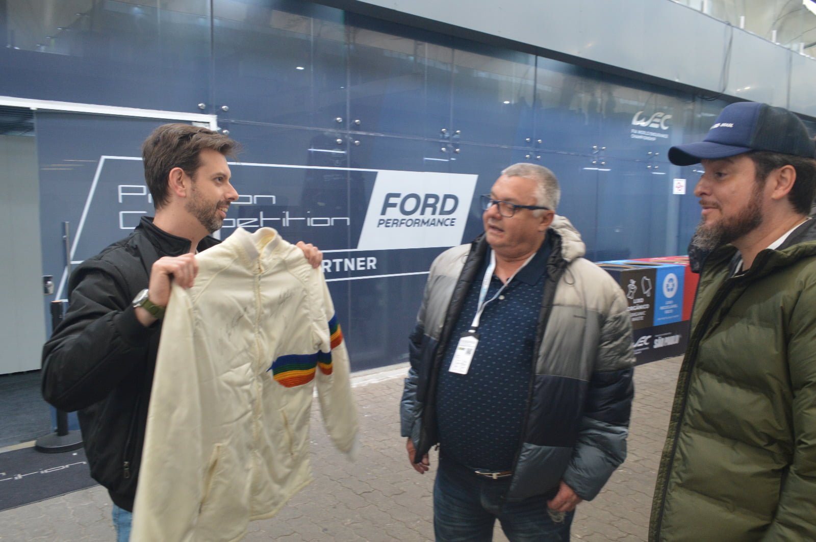 A partir daí, com os ombros mais leves, tivemos vários momentos que, num dia menos cheio, poderiam render colunas próprias. Boas conversas com Geferson Kern e Rodolpho Siqueira; apresentamos a jaqueta a Ingo Hoffman e a Christian Fittipaldi, que perdeu um duelo com Lucas sobre quem trazia mais referências à Copersucar em suas respectivas vestimentas e se emocionou quando compartilhamos com ele algumas histórias a respeito de Wilsinho; Roberval Andrade, muito atencioso, teve uma longa conversa com Lucas e ainda gravou um vídeo para meu pai, seu grande fã…