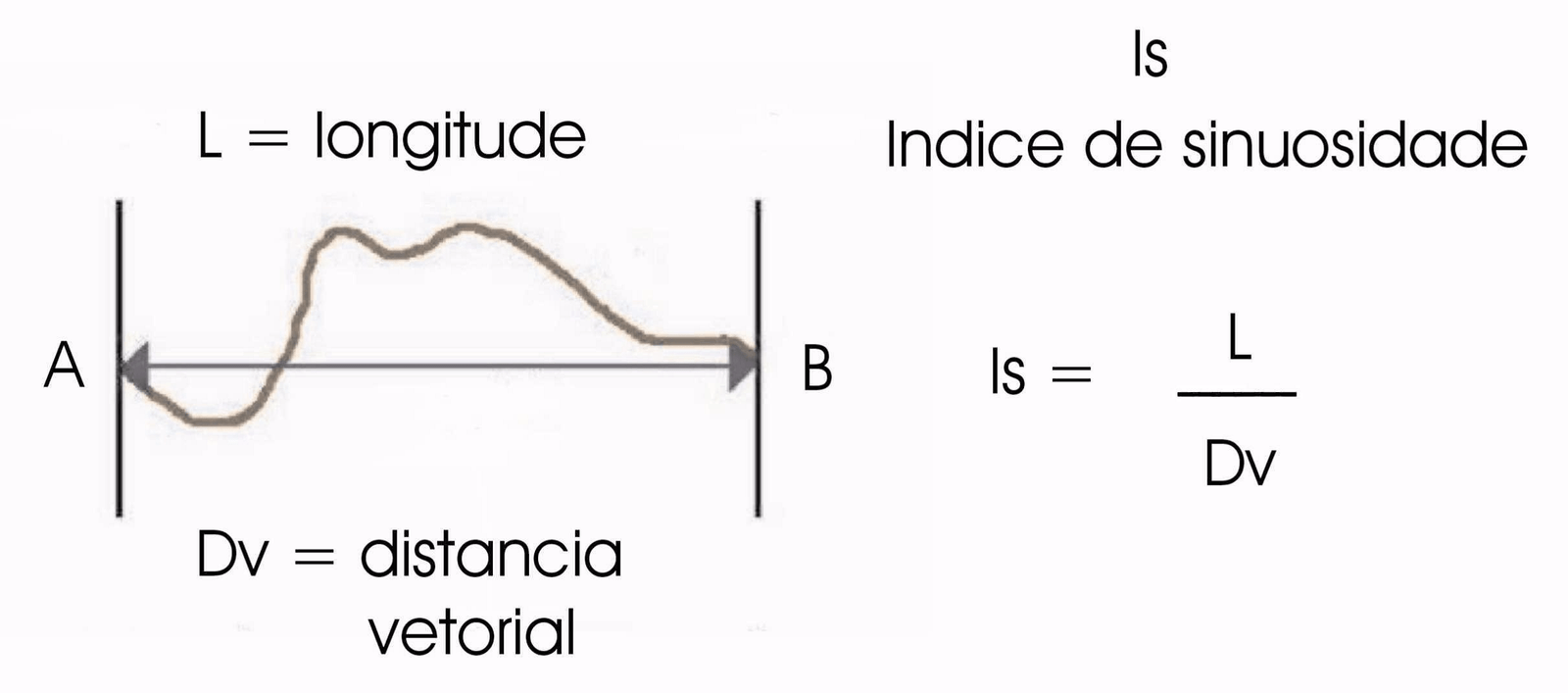 Como todos sabemos, a distância mais curta entre dois pontos é uma reta. Esse é o recorrido mais fluido possível e qualquer outro que aumente essa distância reduz a fluidez e aumenta o tempo requerido para cobrir essa distância. Nos estudos hidrográficos sobre os rios, há uma magnitude para quantificar essa perda de fluidez: o Índice de Sinuosidade.