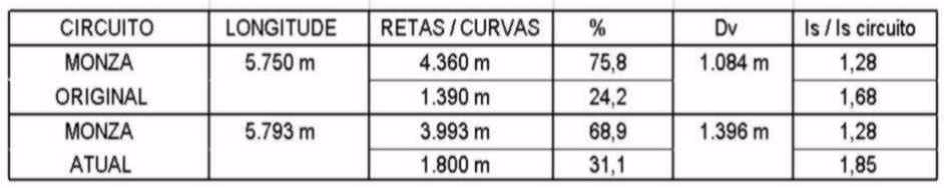O seguinte circuito analisado foi o de Monza e os dados oferecidos por este circuito, além de curiosos, também confirmaram uma grande perda de fluidez, como vemos a continuação: