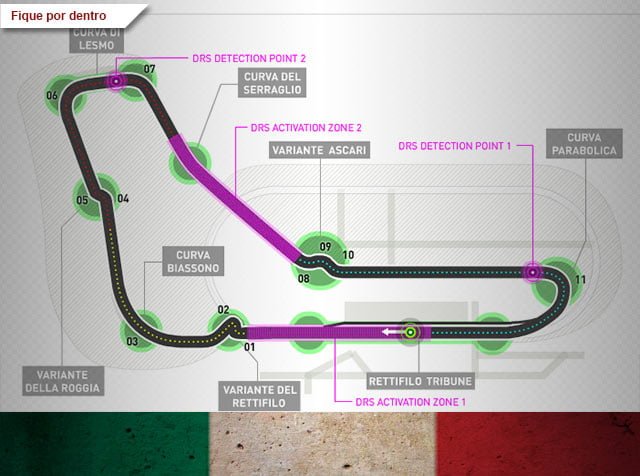 Finalmente Monza! A pista de alta-velocidade que adoramos. A Parabólica. A duas Di Lesmo. Monza é a pista que nos remete as mais clássicas épocas do automobilismo e todas as referências nos trazem lembranças de velocidade pura.