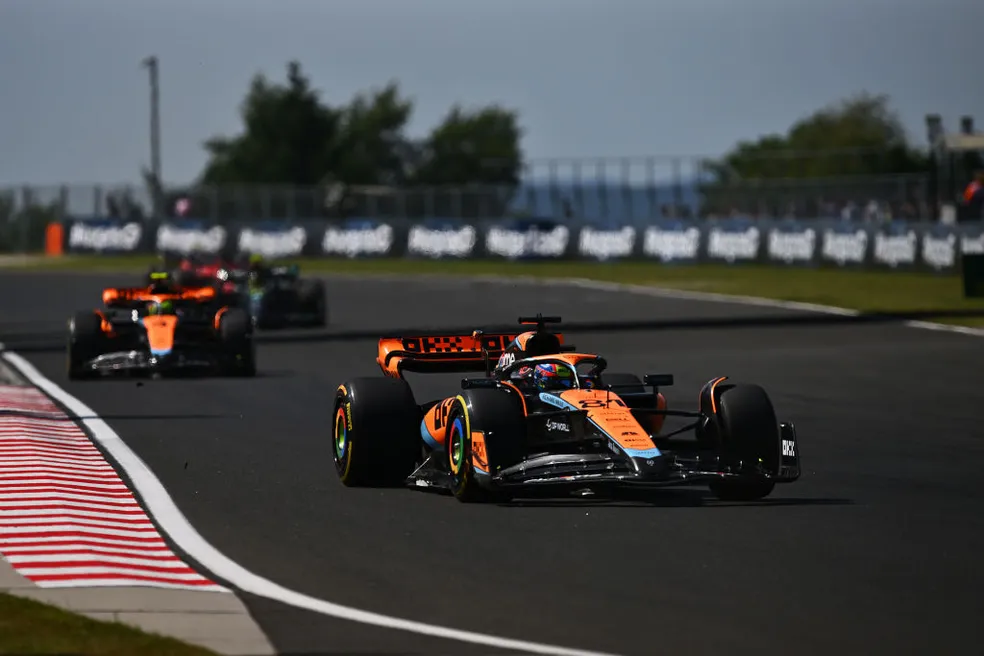 Aston Martin, Mercedes e Ferrari já ficaram com a segunda força por algum momento em 2023, mas oscilaram e a primeira citada já pode ser considerada a quinta força do ano. No último mês, meio que do nada, a McLaren saiu do fundo do pelotão para ultrapassar o feudo da família Stroll, a turma de Toto Wolff e a bagunça de Maranello para se estabelecer como segunda força da F1, pelo menos nesse momento. A própria McLaren tinha certas dúvidas se conseguiria repetir o ótimo desempenho na fluída pista de Silverstone na travada pista de Hungaroring, mas o time laranja emulou a performance da quinzena anterior com seus dois carros ocupando a segunda fila do grid e rapidamente superando Lewis Hamilton, que se preocupou demais com Verstappen e se esqueceu da dupla de sua ex-equipe. Porém, foi Piastri que ficou em segundo no primeiro stint. O australiano foi bastante esperto ao ver Max, Lewis e Lando se espremendo na freada da primeira curva.