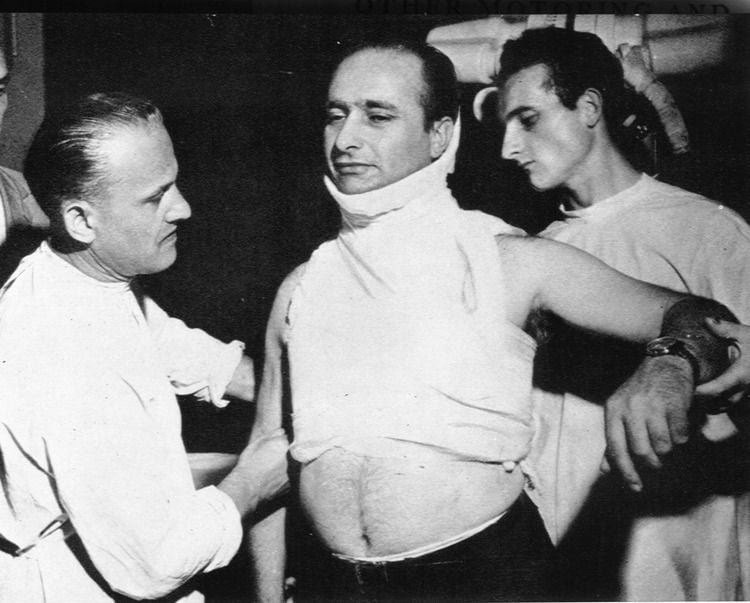 Em outra ocasião, quando ele estava no hospital se recuperando do grave acidente que sofreu em Monza 1952: “Quando recuperei a consciência, Farina estava ao lado da minha cama, segurando uma coroa de louros.  Achei que ele também devia estar morto! Por fim comecei a perceber que eu ainda estava vivo e ele me falou que havia vencido a corrida e trouxe os louros para mim como uma forma de homenagem.”
