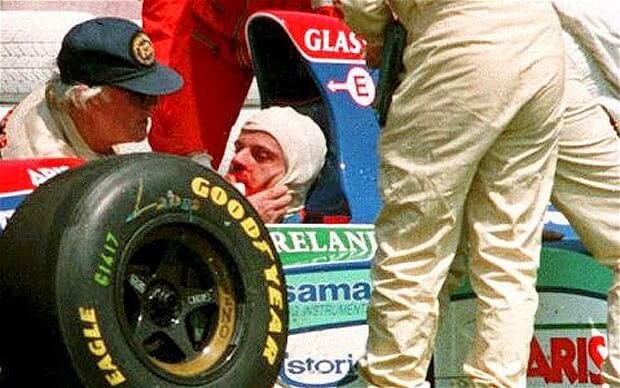 O promissor Martin Donnely sofreu um dos acidentes mais horríveis da história da Fórmula 1 ao colidir contra um guard-rail no circuito de Jerez de La Frontera, 1990. Com o impacto frontal, seu Lotus 102 Lamborghini ficou dividido ao meio, deixando o piloto britânico caído no meio da pista.