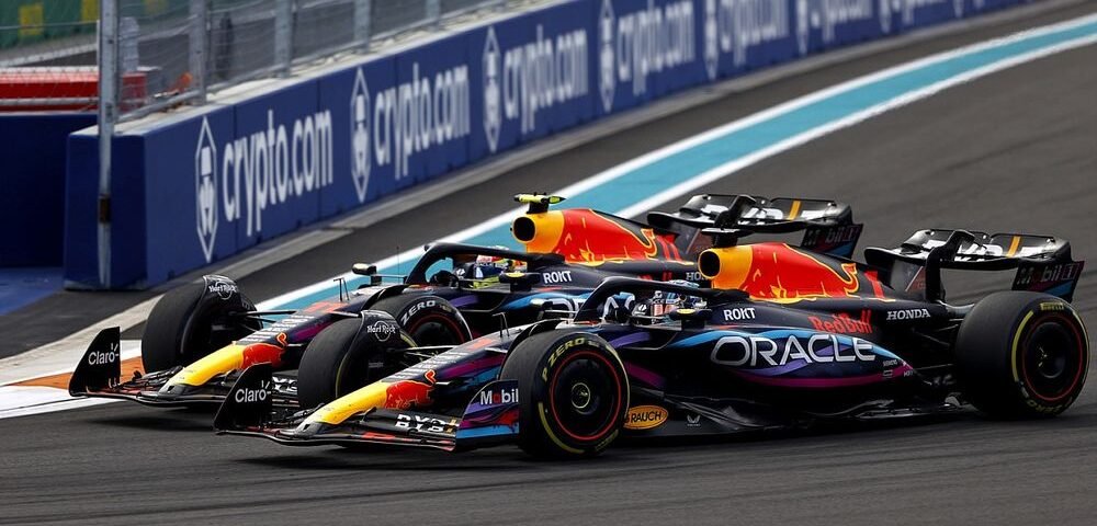 Antes mesmo do final de semana de competição se iniciar, os pilotos já avisavam que a pista de Miami, que foi totalmente recapeado após as críticas do ano passado, poderia trazer inúmeras dificuldades de ultrapassagem, como foi visto semana passada em Baku. Essa era a esperança de Pérez após a classificação desse sábado, quando o mexicano ficou com a pole, enquanto Verstappen sairia apenas em nono após cometer um ligeiro erro na classificação e ter sua segunda tentativa abortada por uma batida de Charles Leclerc. Na mesma curva onde batera no dia anterior, diga-se. Em todos os treinos Verstappen mostrava uma superioridade flagrante em cima de Pérez e mesmo com toda a torcida a seu favor, Checo não contava com um Verstappen motivadíssimo para acabar com essa história de Rei das Ruas, alcunha ganha por Pérez semana passada, após as vitórias em Baku.
