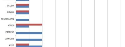 O seguinte piloto analisado é Alain Prost, cujos títulos viriam em 1985, 1986, 1989 e 1993. O francês é um dos pilotos que com frequência aparece nos lugares altos das listas de melhores, confirmando seu apelido de “O Professor”, e estes são os seus gráficos de vitorias. Novamente, em azul as vitorias e em vermelho as derrotas: