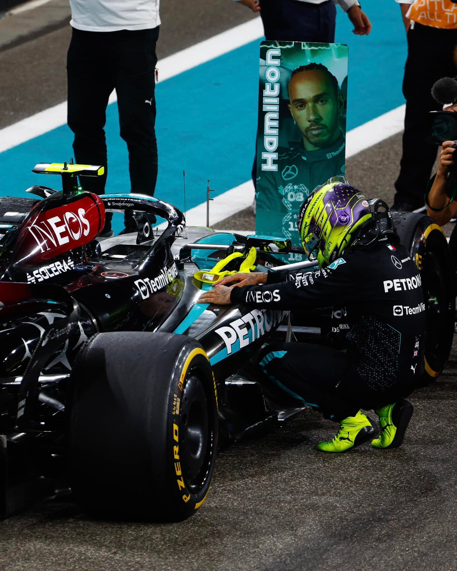 A Mercedes preparou vários belos vídeos para a despedida de Lewis Hamilton, mesmo o inglês largando apenas na penúltima fila. Lewis saiu com pneus duros, numa decisão acertada, pois ao esticar o seu primeiro stint, Lewis era o único com pneus médios nas voltas finais. Melhor ‘calçado’, Hamilton partiu para cima dos rivais e ainda teve tempo para alcançar Russell na volta final, chegando ao quarto lugar, numa disputa bem sossegada com o companheiro de equipe, que um dia lhe pediu autógrafo. As cenas de Hamilton após a corrida demonstram que mesmo estando de vermelho em 2025, sua alma tem a cara da Mercedes.