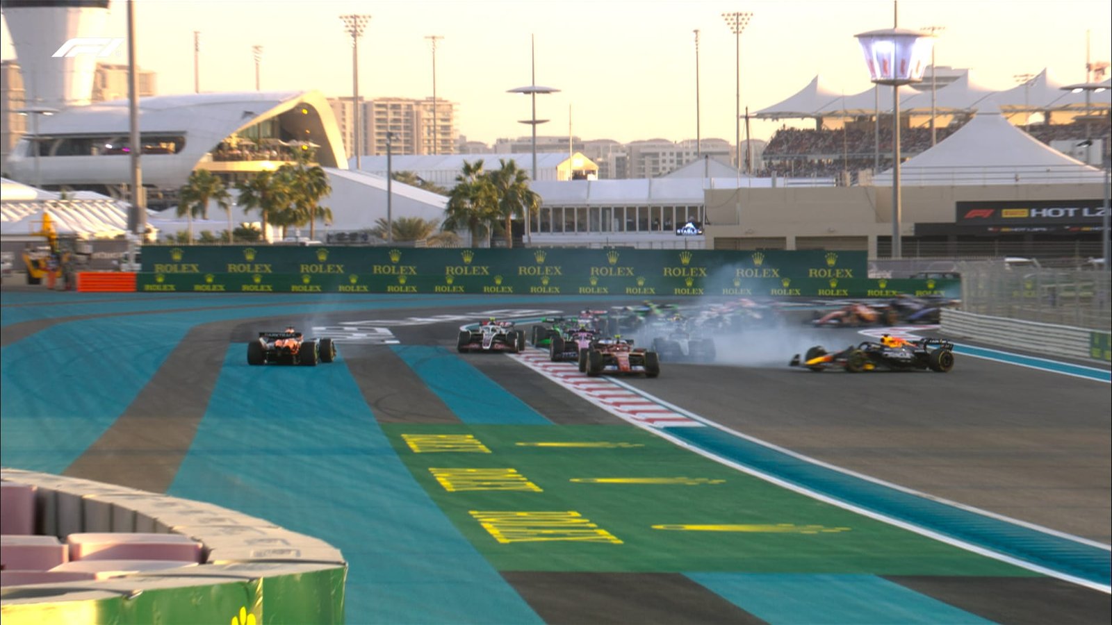 Mesmo com as mudanças recentes no circuito de Yas Marina, eliminando chicanes sem serventia alguma, o autódromo suntuoso em Abu Dhabi ainda está muito longe de agradar aos fãs da F1. Um circuito sem graça e estéreo, que normalmente nos traz corridas sem muita emoção, como foi o caso desse domingo. Com grande parte dos pilotos relaxados, com suas vidas mais ou menos encaminhadas para 2025, provavelmente muita gente foi para a primeira volta da corrida com um pensamento nada conservador e por isso boa parte da corrida se definiu já nos primeiros quilômetros da prova em Abu Dhabi.