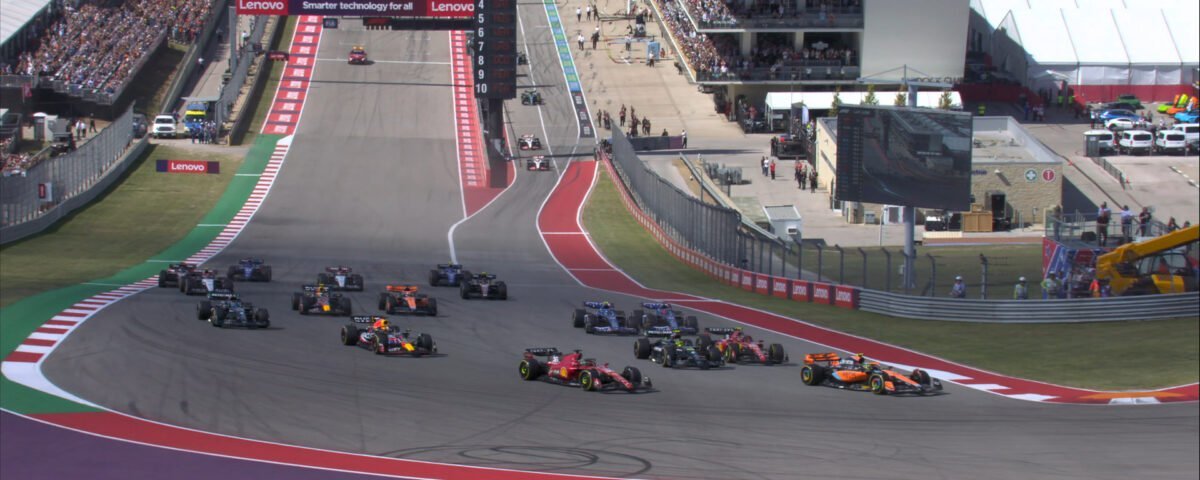 Debaixo de muito calor no Texas, a corrida em Austin não foi das mais empolgantes, mas as potenciais variantes táticas animou a prova norte-americana, que viu um enorme público no COTA. Na largada, mesmo saindo do lado sujo, o segundo no grid Lando Norris ultrapassou facilmente o pole Charles Leclerc na corrida até a primeira curva, assumindo a liderança, trazendo consigo o piloto da Ferrari, Sainz, Hamilton e Verstappen em quinto, se aproveitando de uma largada ruim de Russell. Nas primeiras voltas Verstappen não imprimia um ritmo muito forte, dando a sensação de que o neerlandês estaria se poupando e, quem sabe, armando uma estratégia de parar apenas uma vez. Isso ligou o sinal de alerta para as demais equipes, fazendo com que uma parada única fosse levada em conta.