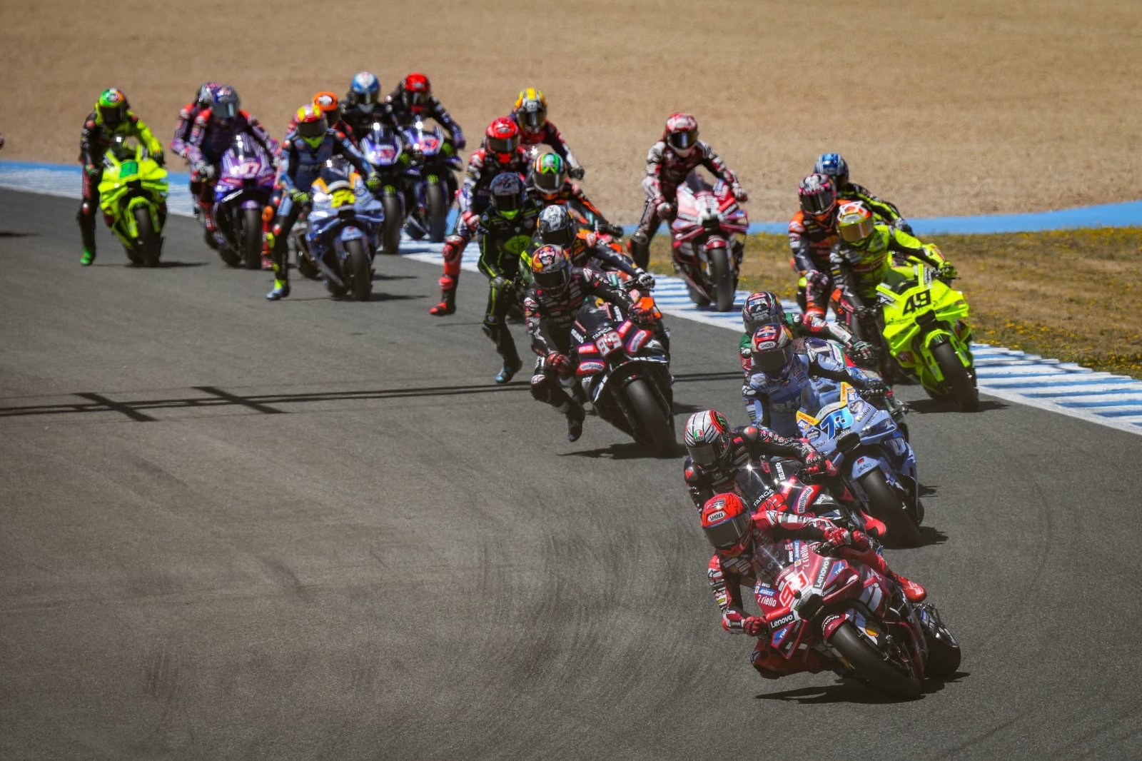 Com sol à pino, Marc Márquez largou muito bem no domingo, mas o espanhol da Ducati de fábrica viu ótimas largadas da dupla da Aprilia de fábrica e de Alex Márquez. Três pilotos que demonstraram ter um ritmo melhor do que o dele. Normalmente eclipsado pelo irmão mais velho e lendário, Alex repetiu o que fez ano passado, quando venceu em Jerez com um ritmo superior aos demais. O piloto da Gresini já tinha conseguido um ótimo tempo nos treinos livres da sexta, liderou a Sprint com piso seco antes de cair com pista molhada. Alex rapidamente ultrapassou Bezzecchi e partiu para cima do irmão mais velho, o ultrapassando ainda no começo da corrida.