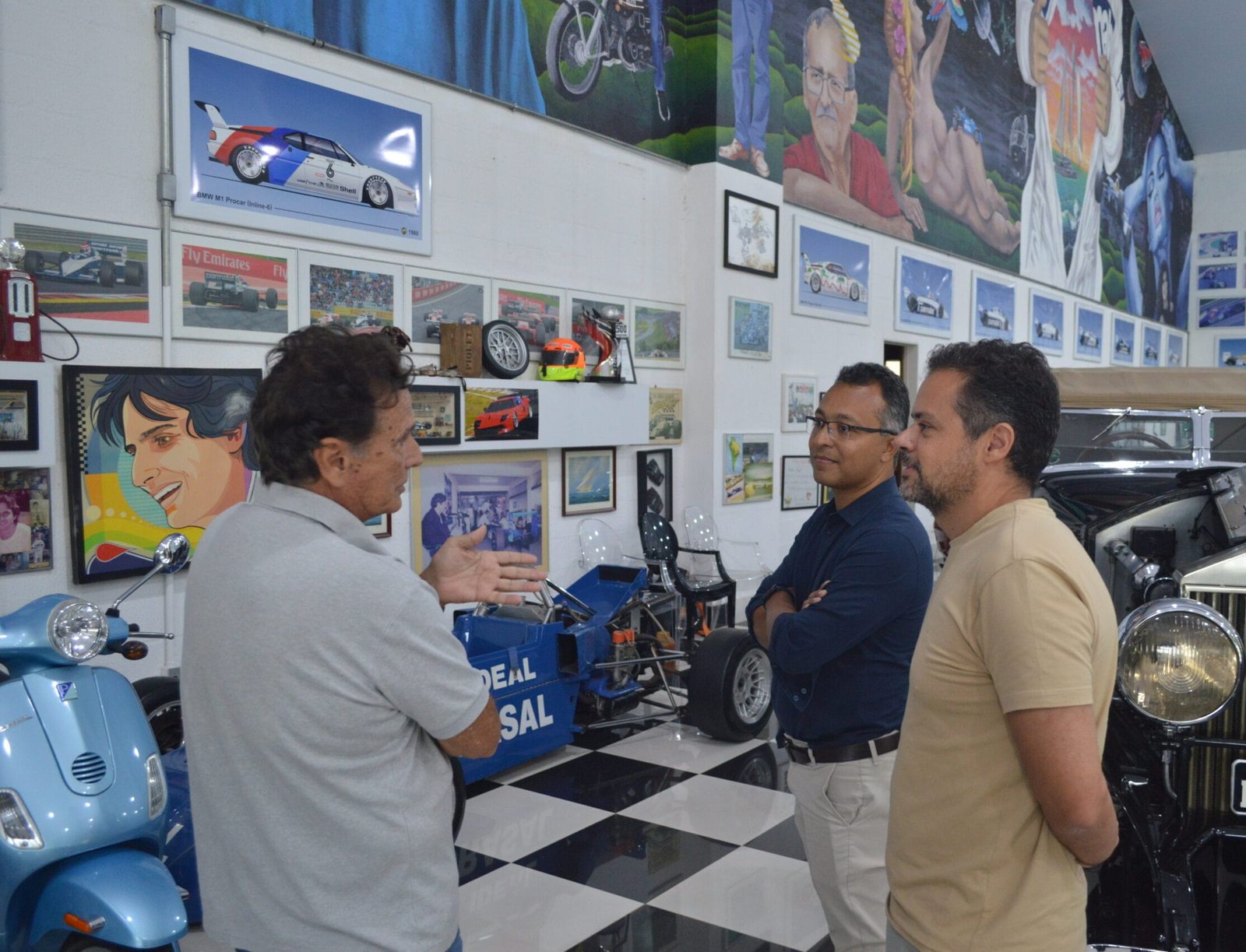 Sempre que vejo as pessoas visitando e divulgando fotos da garagem do Nelson Piquet, fico com uma curiosidade. Imagino que possua muitos objetos relacionados a Fórmula 1 como capacetes, macacões ou coisas do tipo; ele possui outros objetos como peças, equipamentos ou carros também, ou apenas a famosa Williams na parede da sala?