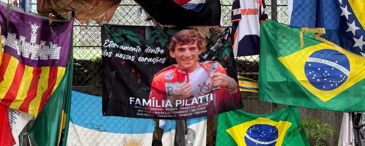A estátua feita em sua homenagem é de um realismo e uma tristeza incríveis, causando o famoso nó na garganta. Mas as bandeiras – do Líbano à Letônia, da Costa Rica à Bósnia, da Argentina ao País de Gales -, passando por várias camisas e faixas de equipes de futebol brasileiras, cartas, bilhetes, flores fotos de familiares… tudo isso foi o mais tocante. E o nó na garganta que começa  desde assim que vemos a placa “Piazza Ayrton Senna” se transforma em lágrimas genuínas e silenciosas, solitárias.